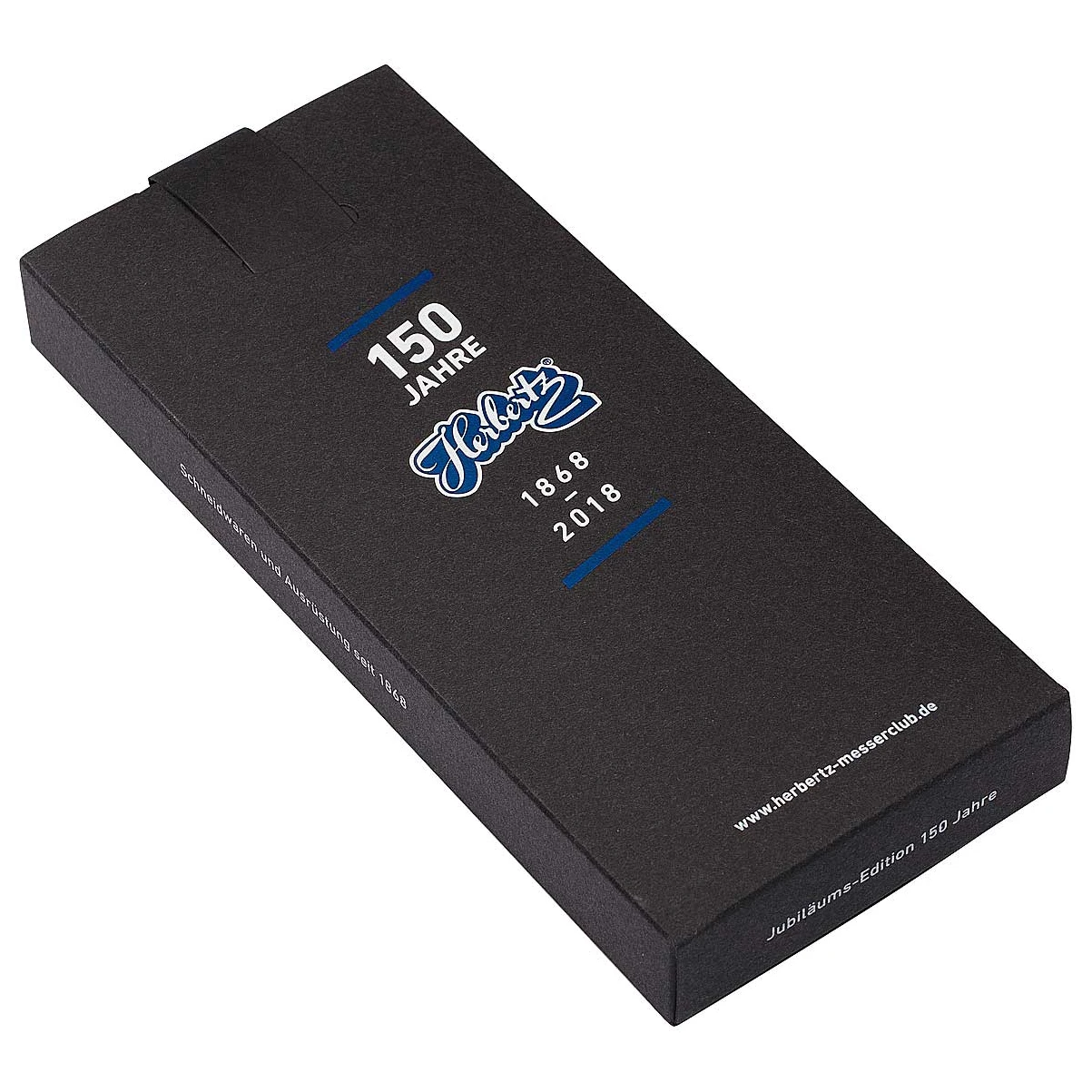 Das Jubiläums-Taschenmesser von Herbertz ist insgesamt auf nur 150 Exemplare limitiert und speziell für das 150-jährige Bestehen der Marke entworfen wurden. Der Griff aus exklusivem Hartholz und polierten Neusilberbacken sorgt für einen besonders edlen Look. Neben der robusten Klinge beinhaltet das Messer noch eine Säge mit integriertem Kapselheber und eine kleine Klinge. Das Messer wurde in Solingen hergestellt.