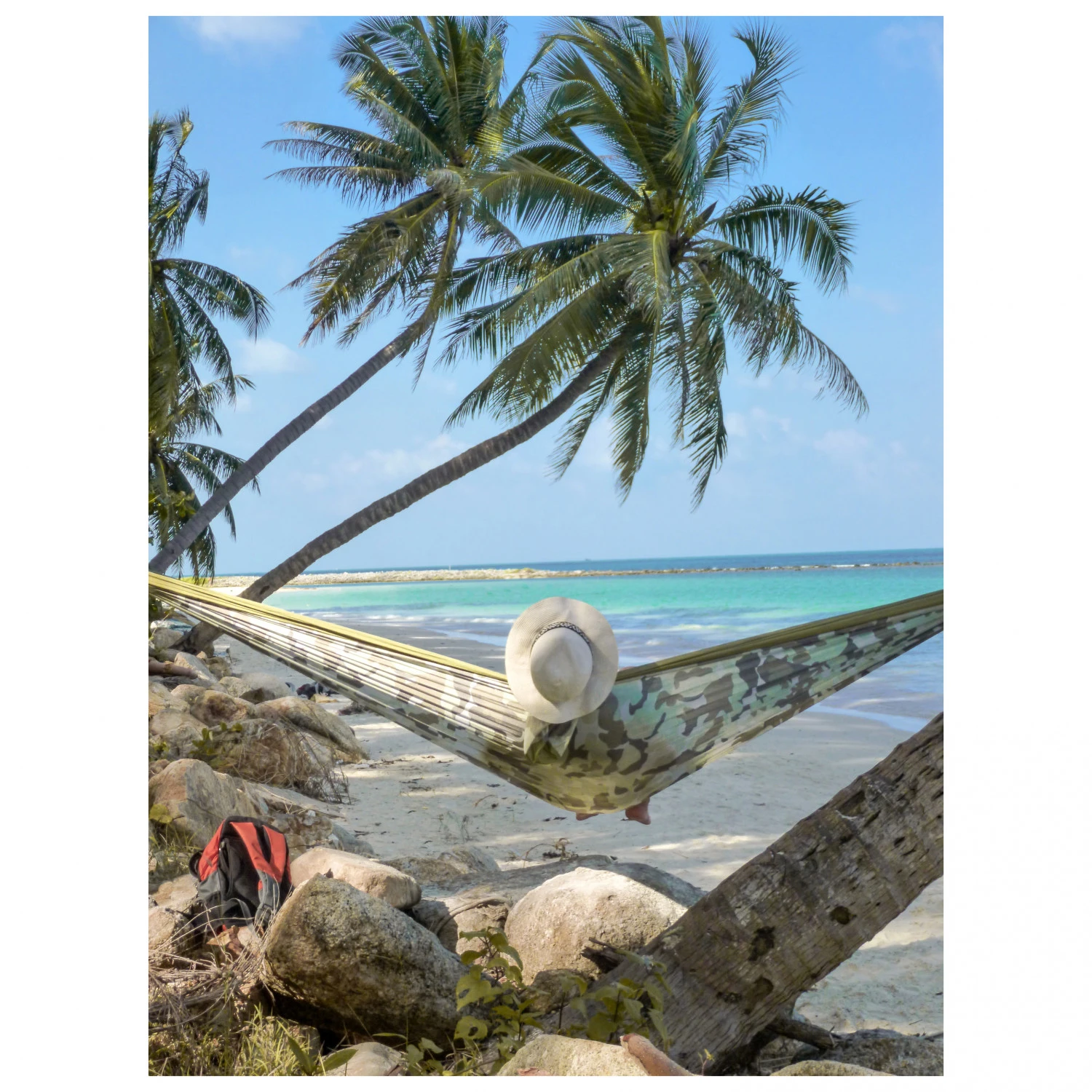 Die Colibri 3.0 von La Siesta ist die perfekte Reisehängematte. Durch ihren leichten, dünnen aber robusten Nylon-Stoff hat sie ein kleines Packmaß und kann in der angenähten Tasche platzsparend verstaut werden. Diese dient im aufgehängten Zustand als Aufbewahrungsfach für ein Buch oder Snack. Das 40 mm breite Aufhängesystem ist fest mit der Hängematte verbunden. Es kann mit Haken aus strapazierfähigem Flugzeug-Aluminium gespannt werden und besitzt einen Baumschutz um die Rinde vor zu hohen Belastungen zu Schützen. Das gesamte Paket wiegt nur 0,8 Kilogramm, es passt also in jeden Rucksack. Die Colibiri hat eine große Liegefläche und ist mit einer Belastbarkeit von 180 Kilogramm für zwei Personen geeignet. Praktisch: Sie kann auch als Picknickdecke verwendet werden.
