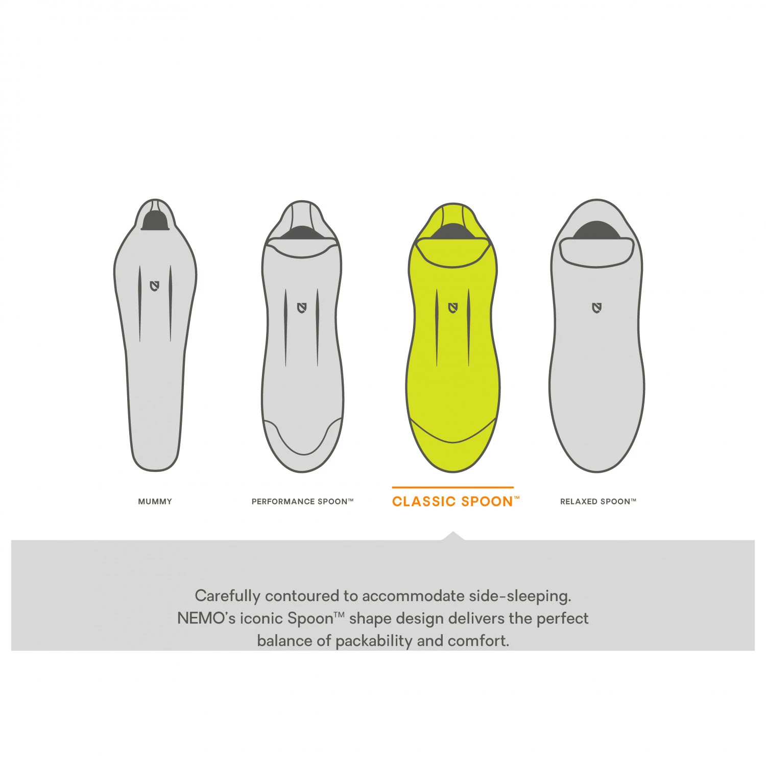 Bei Temperaturen bis etwa 2° C bietet der Forte Mens 35 Kunstfaserschlafsack von Nemo angenehme WĂ€rme beim Camping, Trekking und Radreisen mit Zelt. Mit seinem komfortablen Spoon Shape Design ist der Schlafsack dabei besonders bewegungsfreundlich und bietet vor allem Schultern und Becken genĂŒgend Raum. FĂŒr die hervorragende WĂ€rmeleistung im Nemo Schlafsack ist die synthetische FeatherCore FĂŒllung verantwortlich, die vergleichbar mit einer DaunenfĂŒllung mit 650 cuin Bauschkraft ist. Der Forte Mens 35 wiegt nur 1250 g und lĂ€sst sich fĂŒr den Transport im Trekkingrucksack auf 29 x 23 cm komprimieren. Ein passender Packsack und ein extra Aufbewahrungsbeutel aus Mesh-Gewebe ist im Lieferumfang bereits enthalten. Die warme Kapuze und praktische Ventilationsöffnungen auf der Vorderseite komplettieren den funktionellen Rucksack fĂŒr Backpacker.