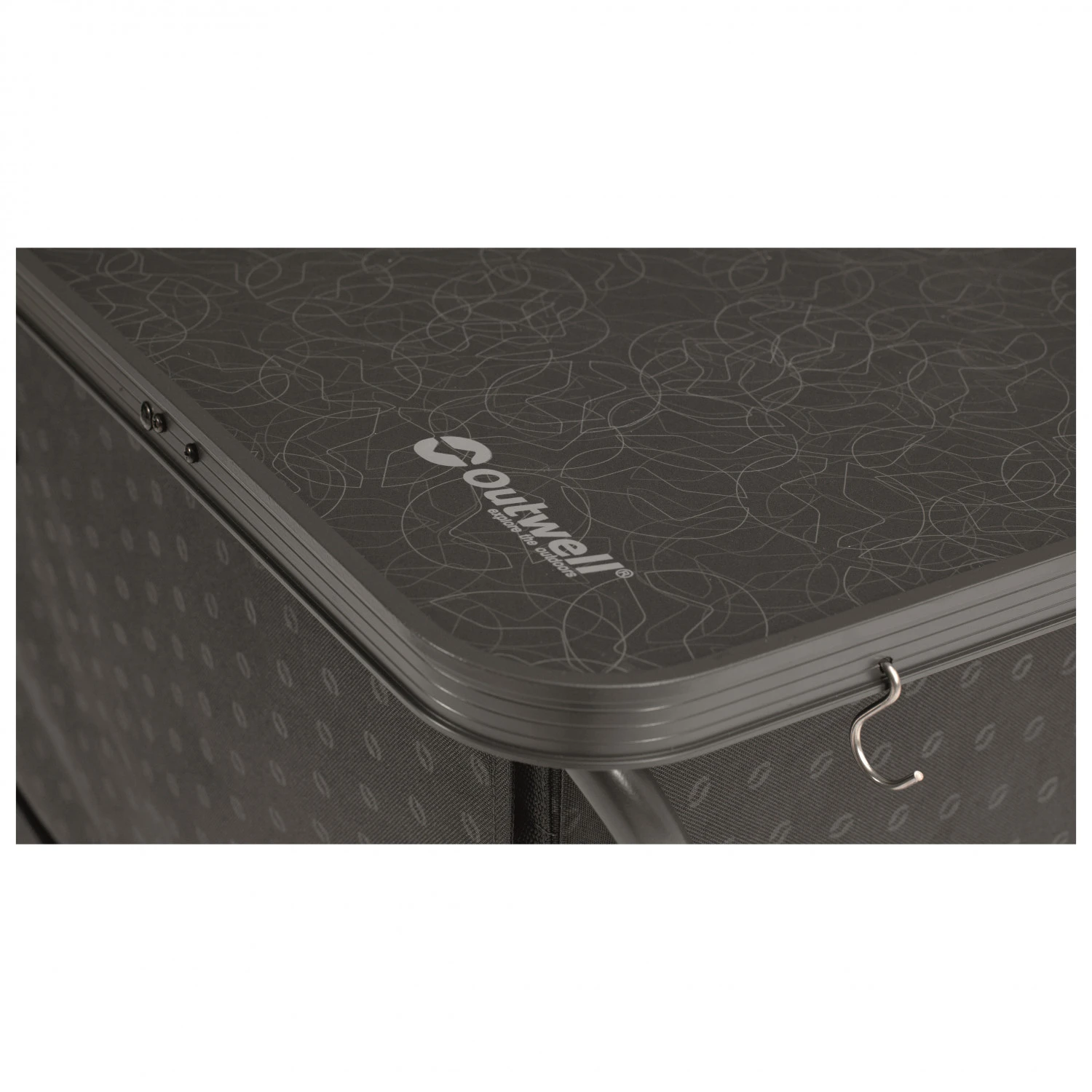Praktisch ist der Campingschrank Aruba Cabinet von Outwell! Der kompakte Schrank kommt mit zwei großen Regalen daher und kleinen Mesh-Innenfächern. Der magnetische Verschluss ist besonders praktisch. Die Rückseite aus Mesh sorgt für eine gute Ventilation. An den seitlichen Haken kannst Du Handtücher aufhängen. Falls Du den Schrank nicht brauchst, lässt er sich platzsparend zusammenklappen.