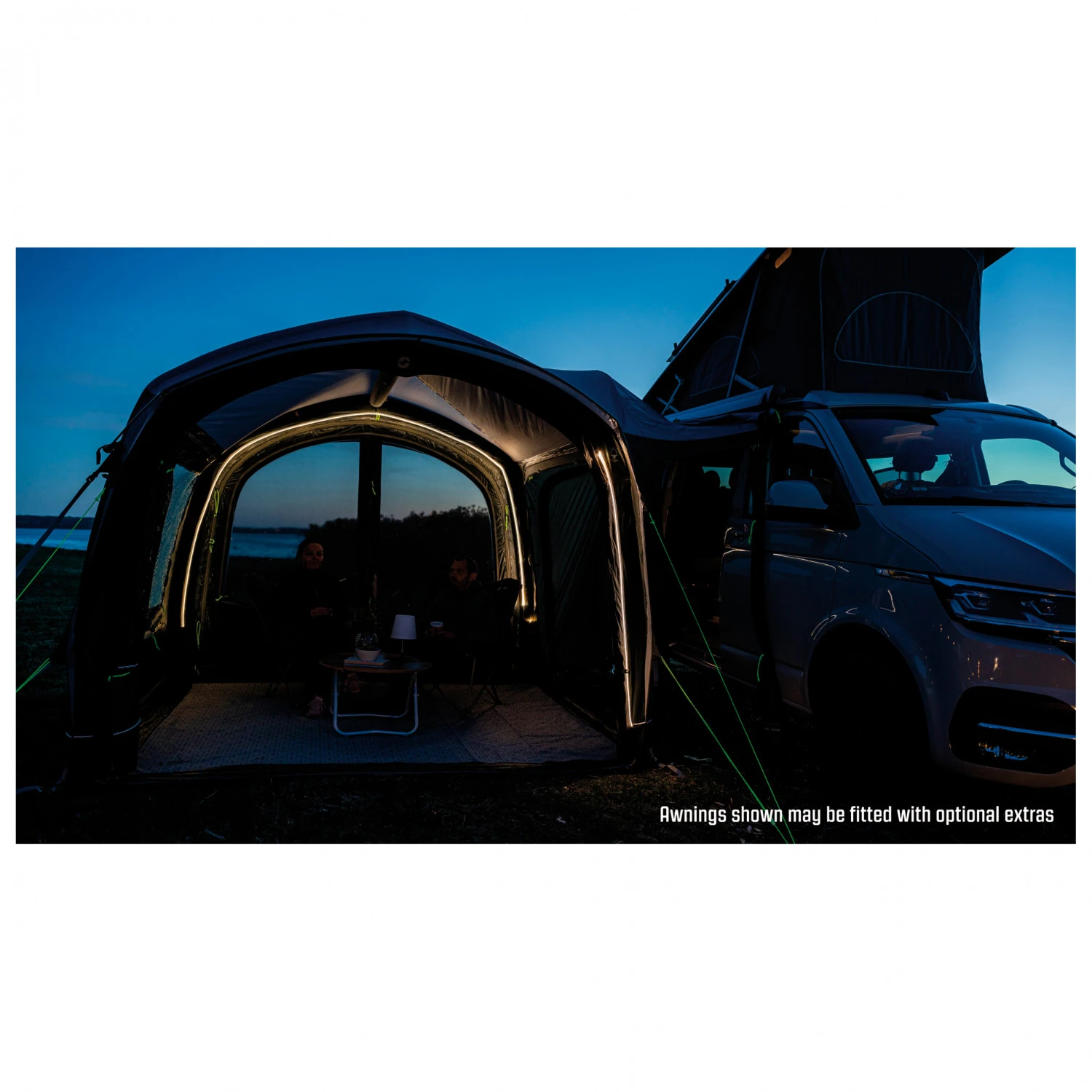 Wie gemacht für ausgedehnte Ausflüge mit dem Camper: das Crossville 250SA von Outwell! Das freistehende Bus-Vorzelt verwendet das extrem strapazierfähige Outtex 6000 Express RS Ripstop-Gewebe von Outwell, das über getapte Nähte sowie eine wasserabweisende PU-Beschichtung verfügt. Hinzu kommt ein wasserdichter, eingenähter Zeltboden, der zusammen mit dem Außenzelt einen zuverlässigen Rundumschutz vor Regen und Feuchtigkeit bietet. Das aufblasbare Power Air System von Outwell ist mit leicht bedienbaren und strategisch platzierten Ein- und Auslassventilen versehen, die einen schnellen und unkomplizierten Auf- und Abbau garantieren. Um ein Maximum an Stabilität und Windfestigkeit zu gewährleisten, kommt zusätzlich das leichte und flexible Duratec Fiberglasgestänge zum Einsatz. Die vormontierten, reflektierenden Abspannleinen machen den Aufbau noch zeitsparender und reduzieren die Stolpergefahr im Dunkeln.