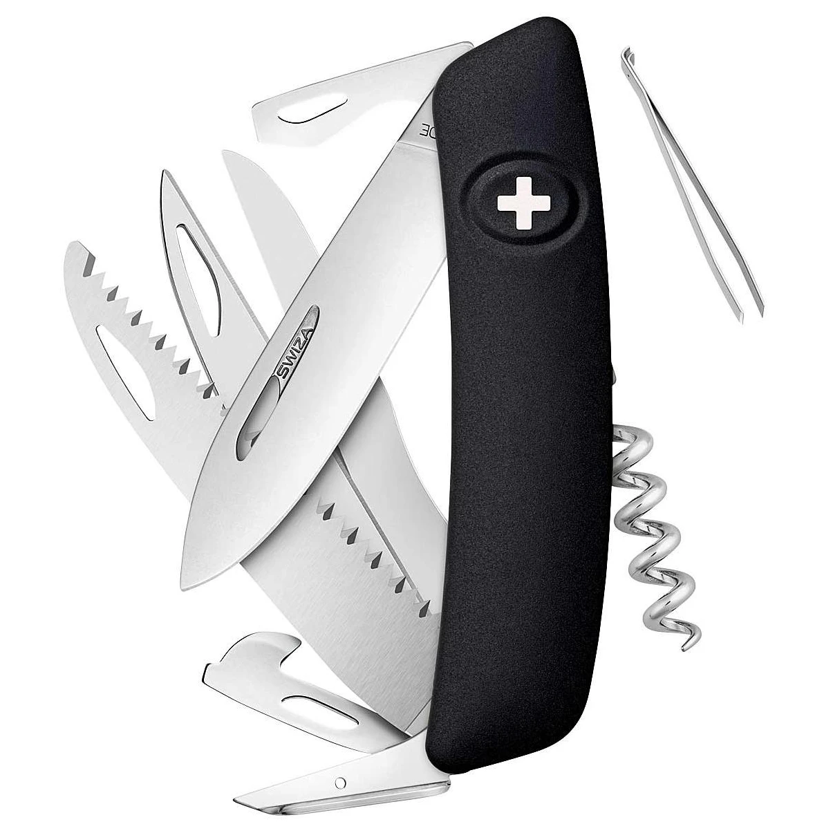 Mit dem Schweizer Messer D09 von SWIZA bist Du für Deine Outdoor-Abenteuer, Deine Freizeit und Deinen Alltag bestens ausgerüstet. Das Taschenmesser verfügt über viele Funktionen und lässt Dich nicht im Stich. Dank der Klingen-Arretierung wird ein versehentliches Einklappen der Klinge verhindert. Um sie zu lösen, musst Du lediglich das SWIZA-Zeichen drücken. Diese integrierte Lösung unterstreicht die hohe Verarbeitungsqualität des Messers. Die leichte Krümmung des Messers ermöglicht Dir ein müheloses Aufklappen aller Werkzeuge, während die rote Anti-Rutsch-Oberfläche die Handhabung des Messers für Dich erleichtert. Einfach praktisch!